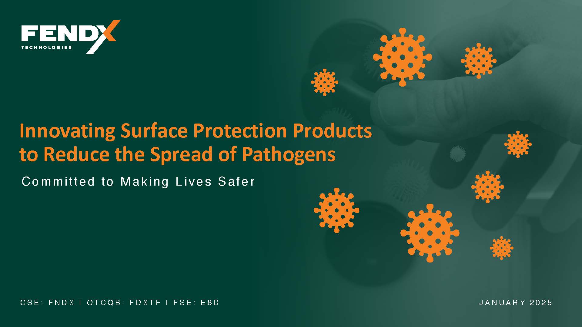 FendX Technologies Inc. is a technology company focused on developing products to make people's lives safer by keeping surfaces clean.
